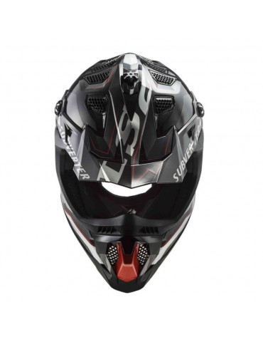 Casque LS2 MX700 Subverter Evo Arched noir / argent / titane. Il s'agit d'un casque Cross-Enduro avec une coque en KPA (Kinetic Polymer Alloy) qui offre une grande absorption d'énergie lors des impacts. Il est doté d'un intérieur très confortable, respirant et amovible.
