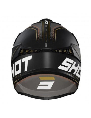Casque SHOT Lite Prism noir mat / or. Casque de motocross et d'enduro équipé de conduits de ventilation sur le dessus de la tête, sur le menton et d'une ventilation occipitale.