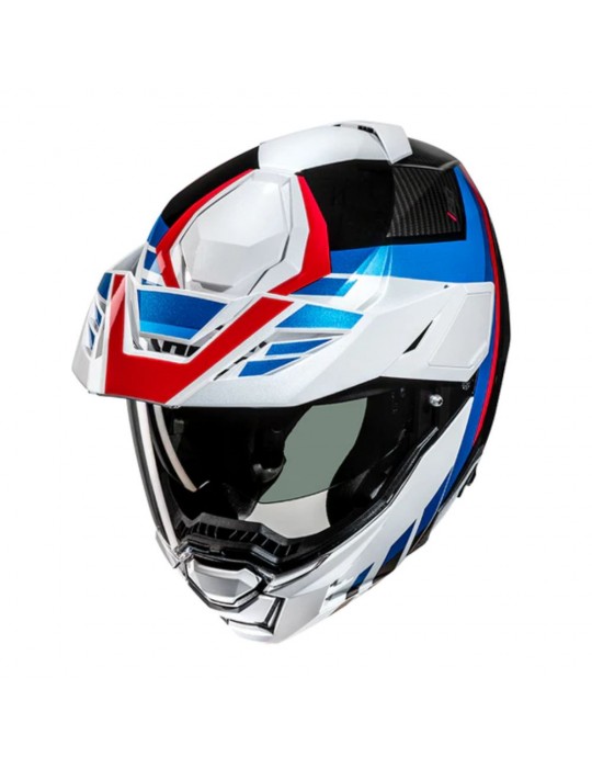 Combinant les caractéristiques d'un casque intégral et d'un casque ouvert, la mentonnière peut être relevée pour transformer le casque en une configuration plus ouverte. Le pilote peut ainsi bénéficier de la protection d'un casque intégral lorsque la mentonnière est abaissée et du confort d'un casque ouvert lorsque la mentonnière est relevée.