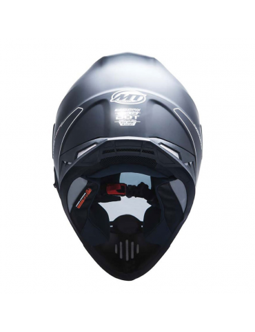 Casque MT Synchrony Duo Sport Solid noir mat. La sportivité est la caractéristique la plus importante de ce casque intégral. Une base incurvée, un spoiler intégré et de grandes ouvertures d'aération constituent l'essence de ce casque, deux tailles de coque extérieure et son faible poids font le reste. Il peut être utilisé en motoneige avec masque, cou et "écran double ou électrique". Intérieurs respirants, bouclier anti-rayures avec système d'échange rapide.