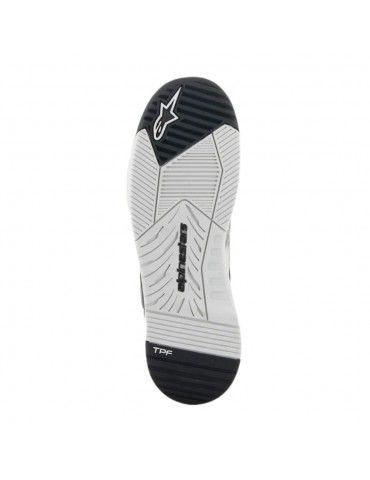 Chaussures ALPINESTARS Speedflight noir / gris / blanc. Chaussures à semelle extérieure en caoutchouc double densité avec parois avant protectrices avec adhérence et forme conçues spécifiquement pour les motocyclistes. Elles sont dotées d'une languette élastique pour un ajustement précis, d'un coussinet de changement de vitesse intégré et d'une coque asymétrique en TPU au niveau du talon.