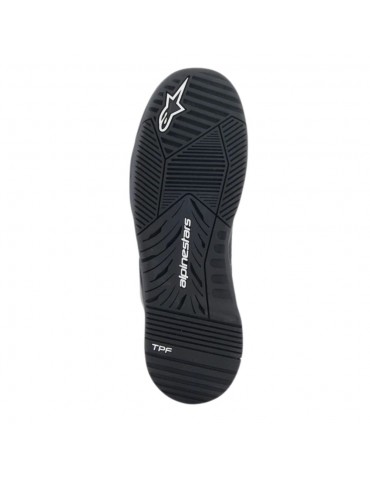 Chaussures ALPINESTARS Speedflight noir / noir. Chaussures à semelle extérieure en caoutchouc double densité avec parois avant protectrices avec adhérence et forme conçues spécifiquement pour les motocyclistes. Elles sont dotées d'une languette élastique pour un ajustement précis, d'un coussinet de changement de vitesse intégré et d'une coque asymétrique en TPU au niveau du talon.