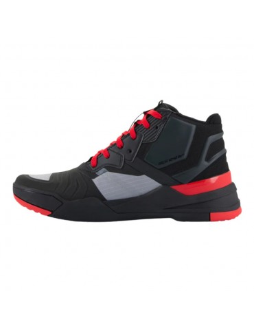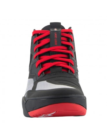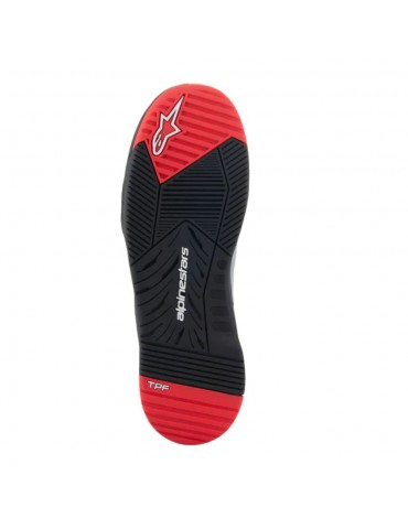 Chaussures ALPINESTARS Speedflight noir / rouge brillant / blanc. Chaussures à semelle extérieure en caoutchouc double densité avec parois avant protectrices avec adhérence et forme conçues spécifiquement pour les motocyclistes. Elles sont dotées d'une languette élastique pour un ajustement précis, d'un coussinet de changement de vitesse intégré et d'une coque asymétrique en TPU au niveau du talon.