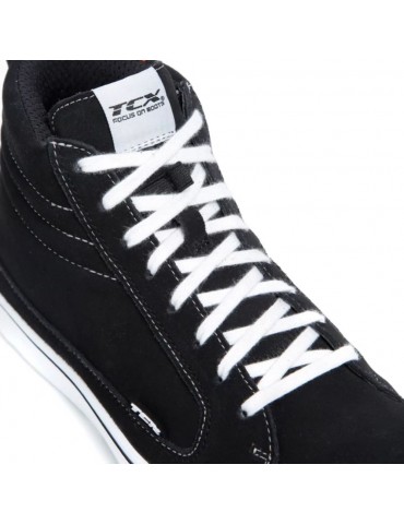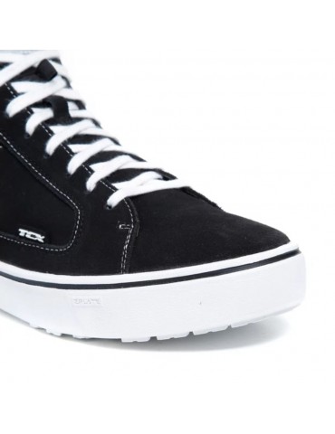 Chaussures TCX Street 3 WP noir / blanc. Avec leur look façon Converse, les chaussures moto TCX Street three Waterproof raviront les motards urbains qui utilisent leur vélo pour le travail ou pour une balade en ville. Grâce à leur semelle anti-torsion, leurs renforts malléolaires et leurs renforts semi-rigides au talon et à la pointe, elles leur permettront de rouler en toute sécurité.