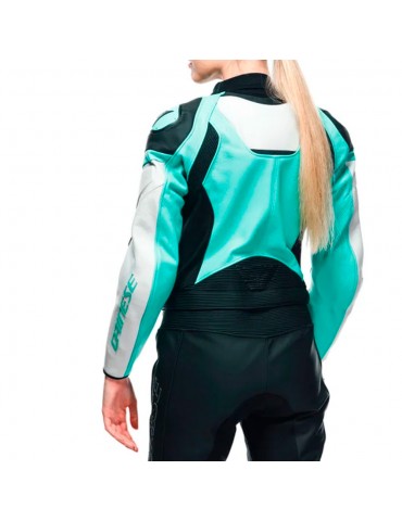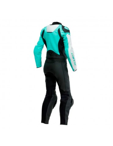 Combinaison en cuir DAINESE Mirage Lady 2PCS noir / aqua-vert / glacier gris. Combinaison moto femme Dainese Mirage, divisible en deux pièces, réalisée en précieux cuir bovin Tutu et ergonomiquement conçue pour s'adapter parfaitement aux caractéristiques du corps féminin. Adaptée à une utilisation sportive, elle est optimisée en particulier pour la conduite sur route.
