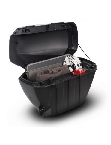- D'un seul tour de clé, elle a une double fonction de verrouillage : elle bloque l'accès à l'intérieur de la valise et la fixe à la moto. Comprend 2 clés et un cylindre supplémentaire qui permet à une clé d'ouvrir trois valises (valises latérales et supérieure SH26 SH47).