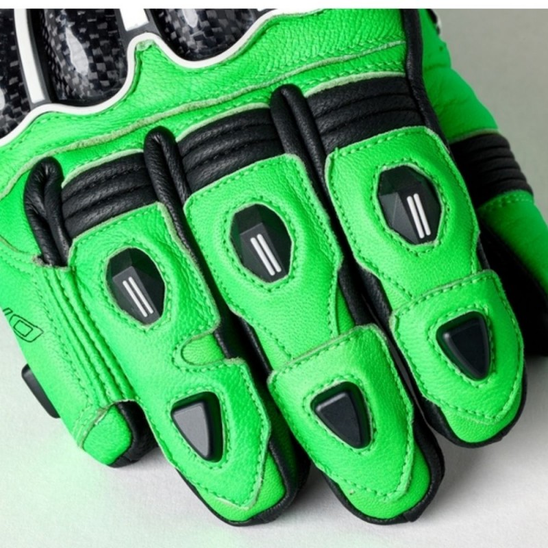 Fabriqué en cuir de kangourou et de vachette pleine fleur. Avec protège-joint en carbone, CE niveau 2, qui vous protège des éventuels impacts. La fibre DuPont™ Kevlar® dans les coutures et la base de la paume, ainsi que la double couche de cuir de kangourou et la glissière de paume RST protègent votre main des frottements à grande vitesse. D'autre part, la double fermeture du poignet vous offre un ajustement fiable et sûr. La doublure DuPont™ Kevlar® le long du reste du gant empêche les déchirures, tandis que le pont de petit doigt élastiqué protège vos doigts sans rendre difficile le passage des vitesses.