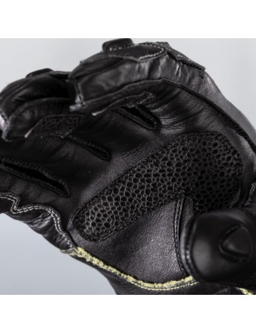 Fabriqué en cuir de kangourou et de vachette pleine fleur. Avec protège-joint en carbone, CE niveau 1, qui vous protège des éventuels impacts. La fibre DuPont™ Kevlar® dans les coutures et la base de la paume, ainsi que la double couche de cuir de kangourou et le glisseur de paume RST protègent votre main des frottements à grande vitesse. Le pont de petit doigt élastiqué protège vos doigts sans rendre difficile le passage des vitesses. D'autre part, la fermeture velcro vous offre un ajustement fiable et sûr.
