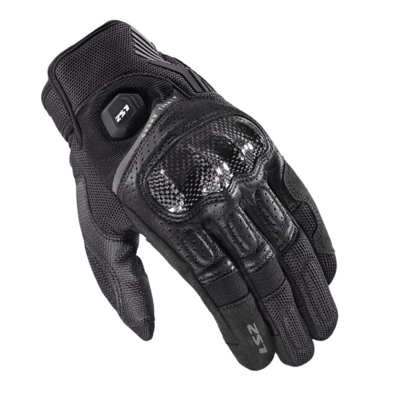 Gants LS2 Atom noir. Gants légers en cuir et mesh, offrant une ventilation optimale, parfaits pour les climats chauds. Ils sont dotés de protections renforcées en carbone aux articulations pour une sécurité accrue. Conçus pour un confort optimal, ils sont dotés d'une fermeture tactile sécurisée et d'une compatibilité avec les écrans tactiles.
