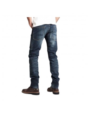 Jean SPIDI J-Tracker bleu foncé. Le jean moto multitâche idéal pour tous les types de motos ; doté du célèbre mélange SPIDI Cordura®/Coton, qui accorde la certification Classe A selon le règlement européen 425/2016, tout en maintenant un confort extrême et un look décontracté. Les genouillères Warrior Lite EN 1621-1:2012 sont facilement ajustables et amovibles grâce à la fermeture éclair externe.
