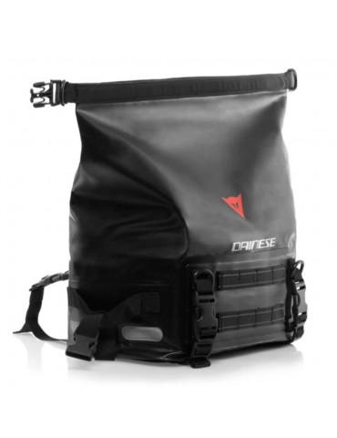 Sac DAINESE Explorer WP 19L noir. Sac en toile imperméable de 19 litres en PVC avec fond rembourré et renforcé, équipé d'une poche interne anti-choc pour protéger le contenu des impacts.