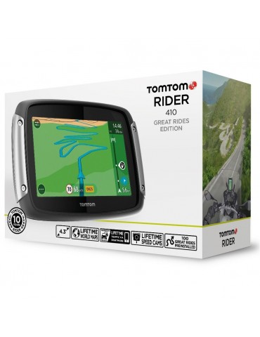 Le nouveau TomTom Rider 410 comprend des cartes du monde et une centaine des itinéraires les plus excitants au monde pré-installés. Il vous offre des services TomTom à vie sans coût supplémentaire, notamment des mises à jour en temps réel complètes de World Maps, TomTom Traffic et Speed Cameras.