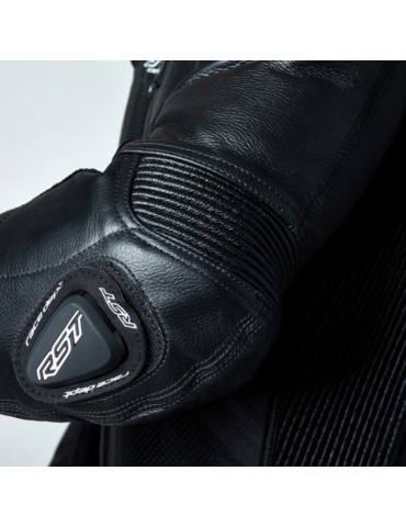 Costume RST EVO Kangaroo airbag noir. La V4.1 Evo est notre combinaison de course haut de gamme, comme en témoignent les pilotes RST du monde entier. Fabriquée en cuir de kangourou et de vachette de première qualité 60/40 avec revêtement en Kevlar®, la V4.1 Evo offre un confort et une protection de pointe. Le V4.1 Evo dispose d'une protection externe supplémentaire et surpasse son prédécesseur V4.1.