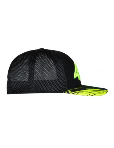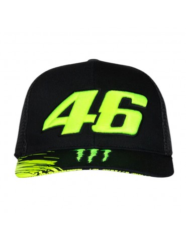 Casquette VR46 MONSTER MID Visor Trucker noir. Casquette Trucker de la collection Monster VR46. Fabriquée en coton et polyester, elle comporte le numéro 46 brodé sur le devant et la griffe Monster sur la visière. Une texture graphique est imprimée sur la visière. Maille douce et respirante à l'arrière. Taille unique.