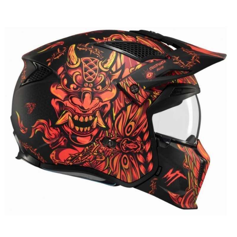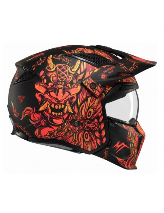 Casque MT TR902B SV Streetfighter SV S Hellish B5 mat. Streetfighter et Jet, avec ou sans visière, ce casque dispose de quatre combinaisons qui permettent à l'utilisateur de choisir le style qui lui plaît le plus à chaque instant.