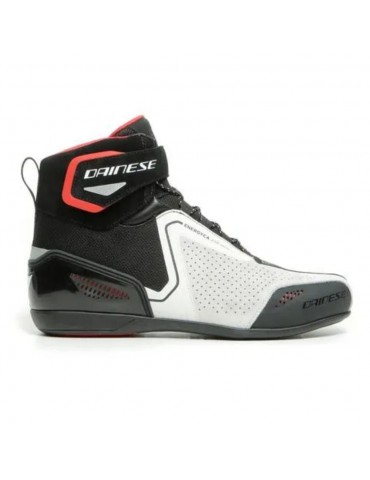 Bottes DAINESE Energyca Air noir / blanc / rouge. Bottes urbaines au design sportif, très confortables et ventilées. Fabriquées en cuir de vachette avec des perforations stratégiquement placées pour une meilleure ventilation, avec des inserts rigides au niveau de la cheville, une structure de talon renforcée et une genouillère renforcée. Elles ont une fermeture à lacets combinée à une bande velcro autour de la cheville.