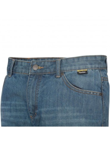 Ce qui distingue ce jean, c'est sa confection : du denim et du Kevlar® DuPont™ pré-tissés pour créer une seule couche de denim hautement protectrice, légère et douce, comme un jean normal. Certifiées CE de niveau AA, les protections de genoux et de hanches de niveau 1 CE offrent une protection supplémentaire.