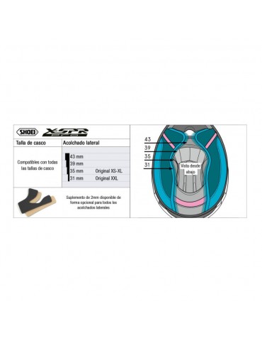 Remplacement SHOEI X-SPR Pro. L'épaisseur du rembourrage est mesurée en millimètres. Les tailles plus fines sont utilisées pour un ajustement plus petit, les tailles plus épaisses pour un ajustement plus grand. Toutes les tailles de rembourrage sont compatibles avec toutes les tailles.