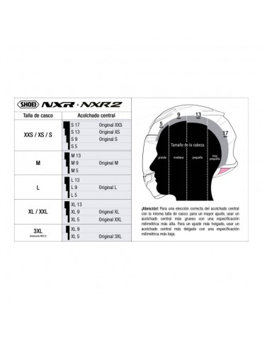 Remplacement SHOEI S5 NXR 2 / NXR. Rembourrage central pour le casque Shoei NXR 2. L'épaisseur du rembourrage est mesurée en millimètres. Les tailles plus fines sont utilisées pour un ajustement plus fin, les tailles plus épaisses pour un ajustement plus serré. Vérifiez le tableau des tailles pour chaque rembourrage.