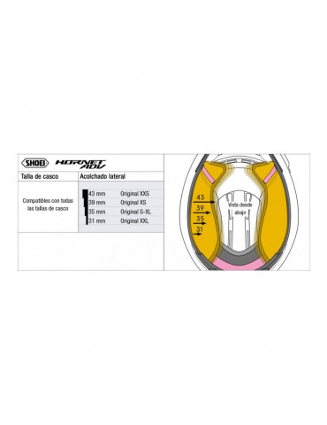 Replacement SHOEI Hornet ADV. Rembourrage latéral pour le casque Shoei Hornet ADV. L'épaisseur du rembourrage est mesurée en millimètres. Les tailles plus fines sont utilisées pour un ajustement plus fin, les tailles plus épaisses pour un ajustement plus serré. Toutes les tailles de rembourrage sont compatibles avec toutes les tailles.