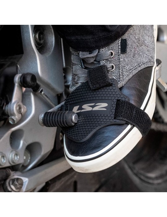 Protecteur de levier de vitesse LS2 noir. Un protecteur de chaussure résistant qui évite les frottements du levier de vitesse, équipé de sangles élastiques réglables avec velcro pour un ajustement parfait à toutes les pointures.