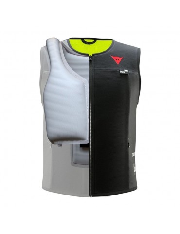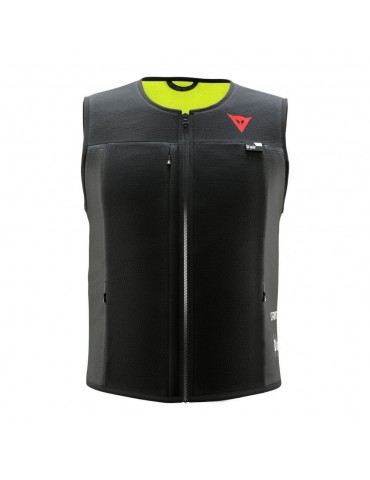 Gilet de protection DAINESE Smart Jacket V2 noir / jaune fluor. Dainese a développé, avec sa technologie D-Air, le gilet intelligent SMART Jacket, qui offre une protection supplémentaire sans qu'il soit nécessaire de brancher des câbles sur le vélo. Ce produit révolutionnaire peut être porté seul ou par-dessus/sous n'importe quel vêtement (toujours porter avec une veste).