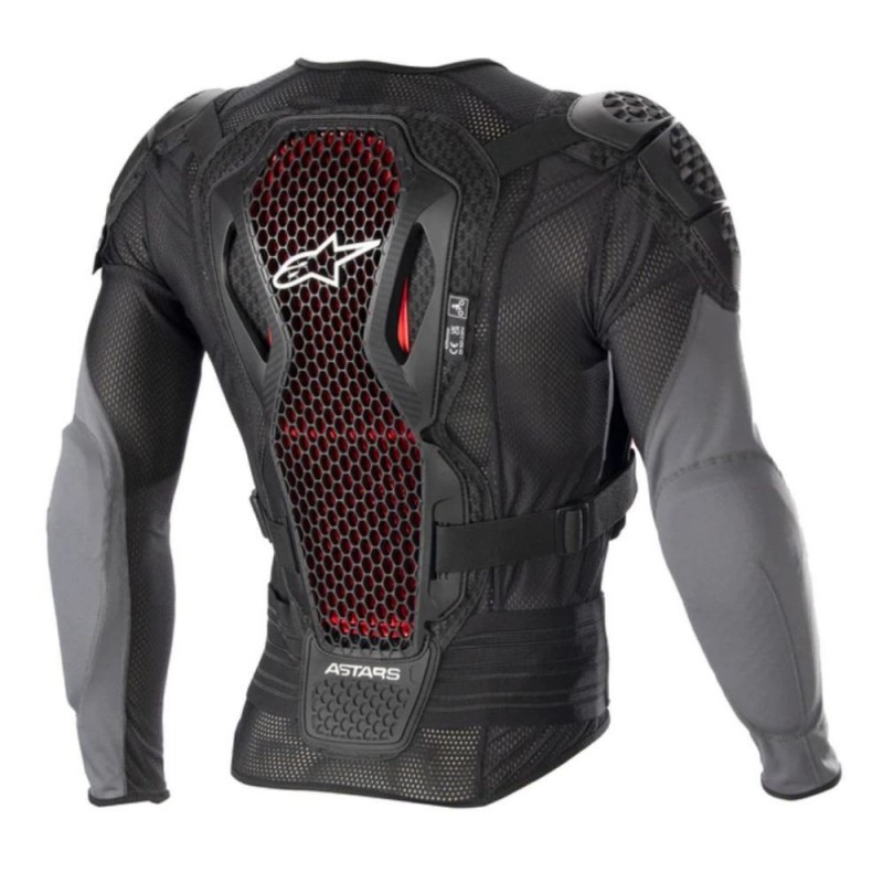 Protection de veste ALPINESTARS Bionic Plus V2 noir / anthracite / rouge. Veste de protection ultralégère certifiée CE et UKCA offrant une excellente protection du haut du corps contre les chocs. Cette protection intègre une nouvelle protection thoracique dotée de la technologie Cell de niveau 2 pour une légèreté ultralégère et une ventilation optimale. La protection dorsale ultra-ventilée avec technologie hybride Nucleon Cell et Flex de niveau 2 est conçue de manière ergonomique pour un ajustement adaptable amélioré. Les protections avant et arrière sont rembourrées de mousse pour un ajustement parfait, sûr et confortable.