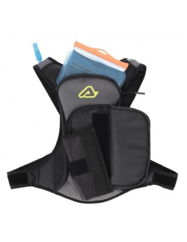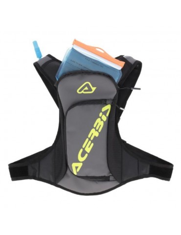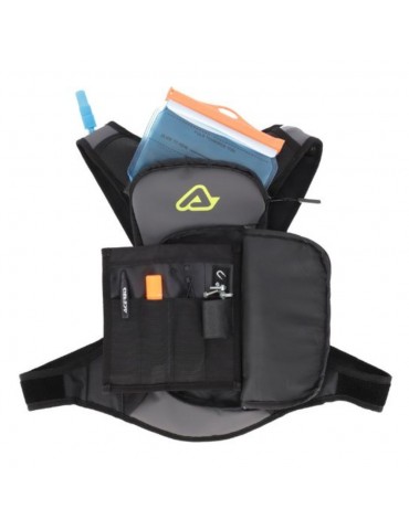 Sac à dos ACERBIS Aqua Logo noir / gris. Le sac à dos ACERBIS ACQUA LOGO est un sac à dos d'une capacité de 5 litres, idéal pour ceux qui ont besoin d'une réserve d'eau et qui souhaitent remplacer le sac banane par un sac à dos petit et confortable. Il dispose d'une poche à eau de 2 litres, d'une autonomie moyenne de 3 heures et d'une poche à outils amovible avec aimant. De plus, son système de fermeture innovant « X », avec fermeture centrale rapide et 4 réglages par velcro, annule l'effet de roulement et offre un plus grand confort.