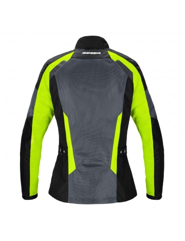 Veste SPIDI Tek Net Lady jaune fluor. La SPIDI Tek Net Lady est une veste de tourisme mi-longue, idéale pour rouler dans les conditions météorologiques les plus chaudes. Les panneaux en mesh sur la poitrine, les bras et le dos offrent une ventilation importante, permettant à l'air de circuler directement pour rafraîchir le cycliste sans compromettre la sécurité.