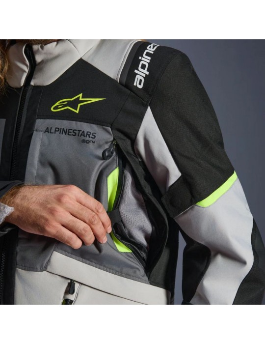 Veste ALPINESTARS Andes V4 Drystar gris foncé / gris glace / noir / jaune fluo. La veste Andes v4 Drystar® allie fonctionnalité avancée et style élégant et moderne, appréciée des motards aventuriers comme des cyclistes urbains pour son côté pratique et ses performances par tous les temps. La construction Drystar® d'Alpinestars garantit une imperméabilité et une respirabilité optimales, quelles que soient les conditions météorologiques.