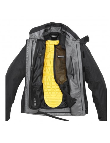 Veste SPIDI Vision Light noir. Comprend une armure et une coque dure qui peuvent être utilisées en combinaison ou comme vestes autonomes.