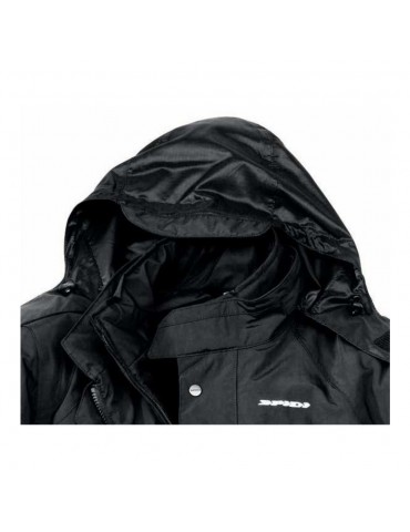 Veste Imperméable SPIDI Cadillac noir. Surveste imperméable pour usage urbain avec capuche, zones réfléchissantes et réglage du volume.