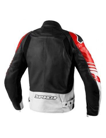 Pour une protection supplémentaire, il y a une disposition interne pour un protecteur dorsal Warrior de niveau 1 ou 2 et un protecteur de poitrine Warrior, tous deux vendus séparément. Le châssis principal du SPIDI Track Warrior est en cuir de vachette de 1,1 à 1,2 mm d'épaisseur avec des sections flexibles en nylon 6.6 Flex Tenax à haute ténacité. Une fermeture éclair et des clips sont fournis pour attacher le pantalon.