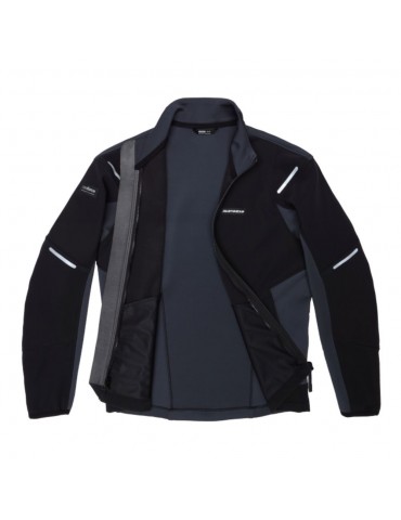 Cette veste est fabriquée en combinant des panneaux Windout et des zones extensibles, avec la double fonction de réduire l'effet de refroidissement du vent et de fournir un maximum de confort lorsqu'elle est portée par-dessus une autre veste.