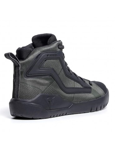 Botines DAINESE Urbactive Gore Tex negro / army verde. Calzado de motocicleta impermeables y transpirables, ideales para emplear en cualquier ambiente urbano, en todas y cada una de las condiciones. La membrana Gore-Tex® Extended y la composición del tejido de la parte superior hacen que las polivalentes zapatillas Urbactive Gore-Tex sean capaces para su uso en las 3 estaciones del año.La utilidad se combina con un elevado nivel de seguridad, por medio de los refuerzos en el tobillo, y el exoesqueleto, que aumenta el grado de estabilidad en la conducción.Las suelas están diseñadas para asegurar la máxima resistencia a la deformación en el caso de impacto, y están fabricadas con la tecnología Groundtrax®, que garantiza el confort, la estabilidad y el agarre en las clavijas del pie, por lo que las zapatillas Urbactive Gore-Tex son exageradamente cómodas y convenientes para un uso incesante a lo largo de todo el día. La comodidad asimismo se ve reforzada por su ligereza, que aumenta el confort al pasear. La plantilla Ortholite® garantiza la máxima transpirabilidad y una amortiguación perdurable.