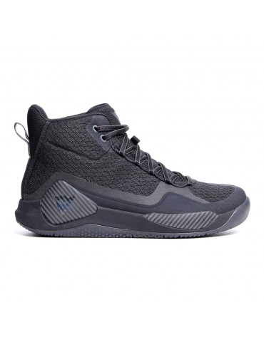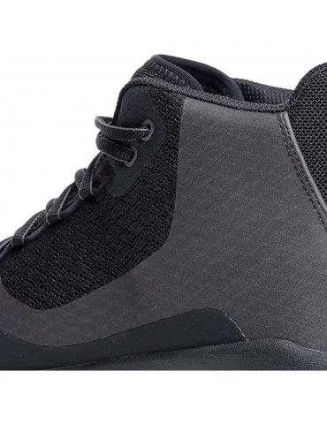 Botines DAINESE Atipica Air 2 negro / carbono. Las Atipica Air 2 son las zapatillas de moto homologadas que garantizan el máximo confort, tanto en la conducción como en la marcha, para un uso diario en cualquier entorno urbano.La construcción en tejido de malla de la parte superior con inserciones termofusibles permite el paso del aire, ayudando a que las zapatillas sean ligeras y ventiladas, ideales incluso en la estación más calurosa.El aspecto deportivo se combina con el cuidado y la atención a los detalles técnicos. Los refuerzos en el talón y el tobillo, combinados con los de la zona de pisada, garantizan la seguridad, mientras que las suelas, que resisten la deformación en caso de impacto, están construidas con la exclusiva tecnología Groundtrax®, con una geometría asimétrica de la banda de rodadura en las zonas de pisada y frenado para garantizar el máximo control de la pisada. La predisposición de la suela se ha desarrollado para un mayor confort durante la conducción, garantizando altos niveles de estabilidad, agarre y tracción, tanto en los estribos de la moto como en el suelo.El ajuste se facilita gracias al práctico ojal situado en la parte trasera del zapato, mientras que la plantilla Ortholite® garantiza la máxima transpirabilidad y una amortiguación duradera.