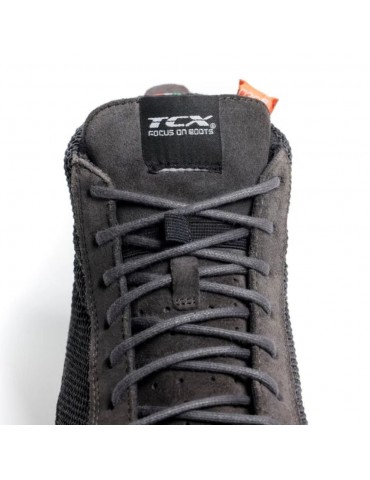 Zapatillas TCX Street 3 Air gris / blanco. Fabricadas en piel gamuzada y tejido mesh transpirable con forro impermeable T-Dry que sostiene los pies secos en todo instante. El cierre se efectúa a través de cordones mas tiene una banda flexible donde puedes guardar los lazos y así evitar que se enganchen en los estribos de la motocicleta. Las TCX Street tres Air disponen de protecciones de nueva generación D3O en el maléolo aparte de otros protectores en la puntera y en el talón. La suela Groundtrax está diseñada para asegurar estabilidad, adherencia y tracción tanto arriba de la motocicleta como una vez bajo. La entresuela tiene la inserción Zplate para mantener una adecuada flexibilidad del zapato y además garantiza una correcta rigidez transversal para proteger el pie en caso de caída. En definitiva, unas zapatillas que te permitirán conducir de manera segura y estilo, las 24 horas del día, los siete días de la semana.