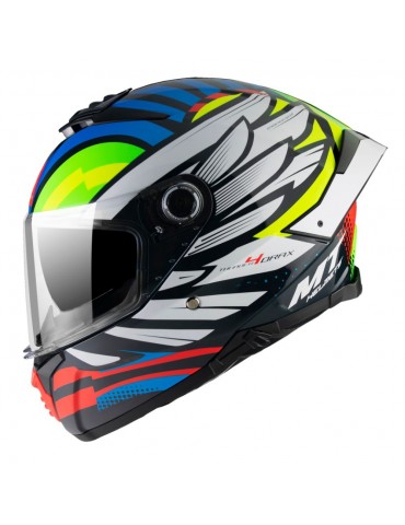 Casco MT FF118SV Thunder 4 SV Drax B7 azul brillo. Thunder 4 SV FF118SV es el primer casco integral de MT Helmets en introducir la nueva homologación ECE 22.06. El casco está dotado de los últimos avances tecnológicos que son el resultado de la experiencia adquirida en las competiciones más prestigiosas. Está realizado en HIRP, una fórmula mejorada de polímeros inyectados en bloques muy precisos que proporciona mayor resistencia contra los impactos con un peso reducido.