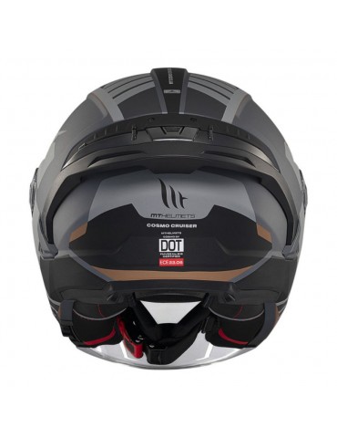 Casco MT OF515SV Cosmo SV Cruiser C2 mate. El nuevo MT CosmoSv es un modelo Jet que se ha diseñado con las últimas tecnologías desarrolladas por la marca. El diseño de la calota también está alineado con las últimas creaciones de MT que están cosechando grandes éxitos comerciales pero que, lo que es más importante, están dando excelentes resultados en cuanto a niveles de seguridad. Es, por supuesto, un modelo homologado por la ECE 22.06 y cuenta con sistema de anclaje de pantalla MT-QVSS y con alojamiento para intercom universal UCS (intercom no incluido).