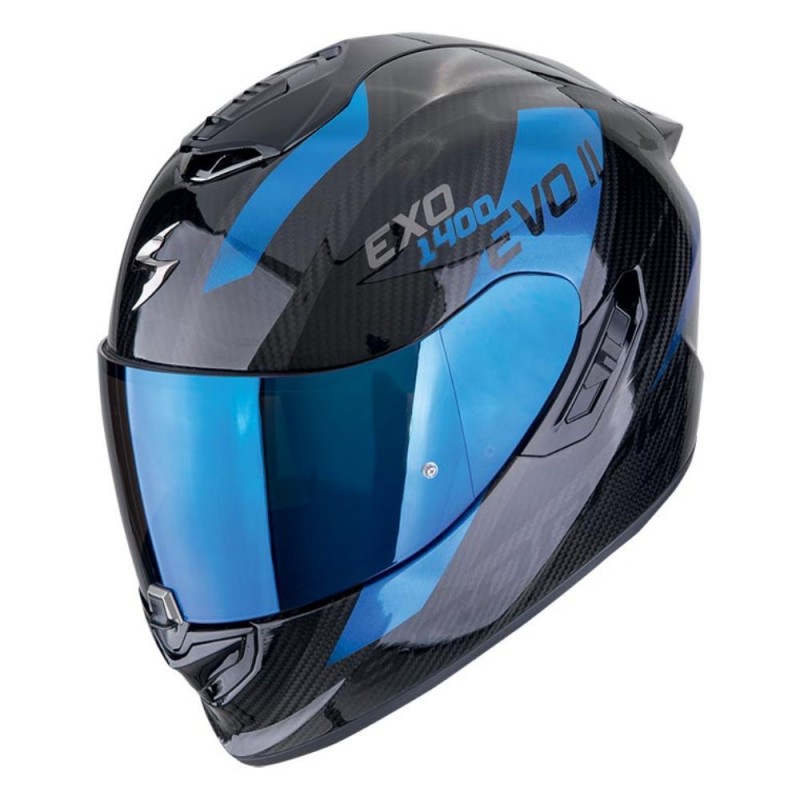 Casco SCORPION EXO-1400 Evo 2 Carbon Air Platted negro / azul. El EXO-1400 EVO 2 supera silenciosamente a su predecesor, el 1400 EVO. Con la última tecnología Scorpion Exo, disfruta de un viaje silencioso inigualable.
