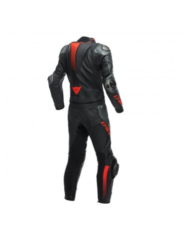 Traje DAINESE Laguna Seca 5 2PCS negro / antracita / rojo fluor. El Laguna Seca 5 2PCS, fabricado íntegramente en piel de vacuno tutú, es la esencia de la conducción deportiva en carretera.