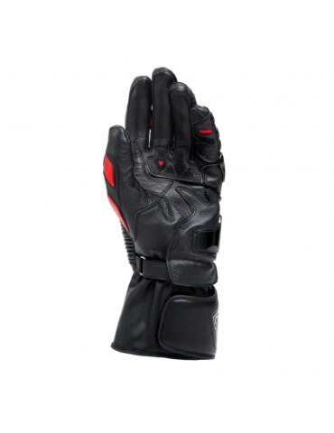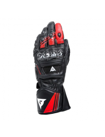 Guantes DAINESE Druid 4 negro / rojo-lava / blanco. Guantes para moto racing de piel ovina con protecciones de carbono en los nudillos, insertos de poliuretano y manguito precurvado y termoformado. Los guantes racing de piel Dainese Druid 4 son una expresión de los más altos estándares de protección, diseñados para disfrutar del máximo rendimiento en la pista y en la carretera.