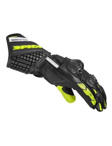 Guantes SPIDI Carbo 5 negro / amarillo fluor. Guantes deportivos confeccionados en piel bóvida con palma en Clarino. Incorporan paneles en Superfabric y Keramida para una máxima resistencia a la abrasión y cuentan con protectores de fibra de carbono en los nudillos y los dedos y refuerzos Warrior para una genial protección.