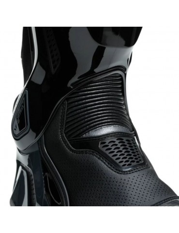 Stivali DAINESE Torque 3 Out Air nero / antracite. Progettati per le giornate di caldo intenso o i circuiti sotto il sole, questi stivali offrono una ventilazione eccezionale grazie ai pannelli in microfibra traforata. Sono la fusione perfetta tra prestazioni, sicurezza e ventilazione!