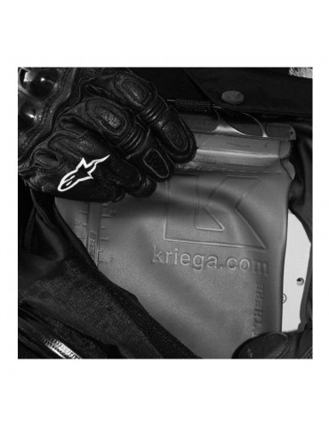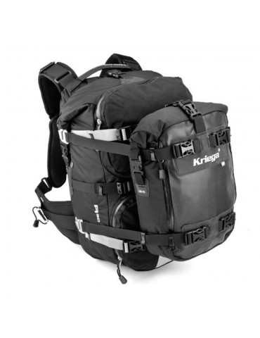 Mochila KRIEGA R20 Backpack. Idónea para uso tanto en carretera como fuera de la carretera, la mochila Kriega Backpack R20 se identifica por su gran utilidad y tecnicidad. Merced a su cierre en el pecho con diseño en X y 4puntos de fijación y a su espalda acolchada con forma ergonómica, la mochila Kriega Backpack R20 es extremadamente agradable. Cuenta con una capacidad total de 20 litros y la posibilidad de acrecentar entre 5 y 10 litros más su capacidad a través de las bolsas opcionales US-5 o US 10. La mochila Kriega Backpack R20 está efectuada exteriormente con Cordura 1000 para asegurar la máxima resistentes.