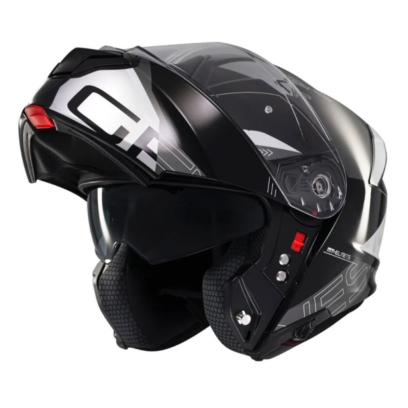 - Sistema de apertura de mentonera con accionamiento monomando (se acciona con una sola mano) y con homologación P/J que permite circular con la mentonera abierta y cerrada.
