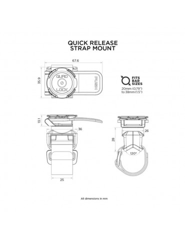 Suporte QUAD LOCK Correia de libertação rápida. Tornar a vida mais fácil com a montagem da bracelete de libertação rápida Quad Lock. Graças ao nosso cadeado patenteado de duplo estágio, o seu telefone ficará seguro no seu carrinho de golfe/carro de controlo ou carrinho de passeio/pram.