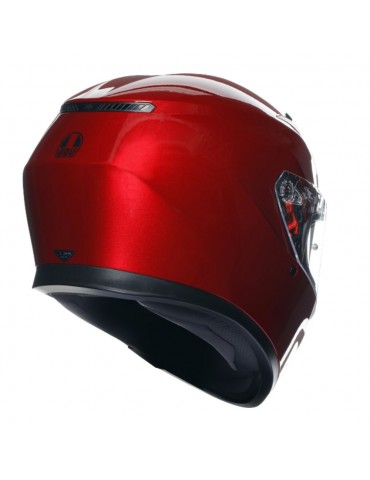 Capacete AGV K3 E2206 MPLK Mono Competizione vermelho. O capacete de pista de última geração fica ainda melhor, com um sistema de hidratação incluído, entradas de ar metálicas desenvolvidas pelo MotoGP e um spoiler bi-plano testado em túnel de vento com múltiplas asas para maximizar o desempenho aerodinâmico e adicionar estabilidade a altas velocidades. A forma da carapaça em fibra de carbono foi desenvolvida para minimizar a interferência com o fato de corrida, enquanto que o interior apresenta um ajuste moldado e locais sem costuras em áreas sensíveis.
