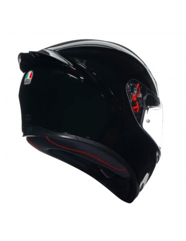 Capacete AGV K1 S E2206 preto. A forma aerodinâmica, as aberturas frontais desenvolvidas pela raça e o spoiler testado em túnel de vento maximizam as possibilidades e dão estabilidade a altas velocidades. A tampa panorâmica anti-riscos oferece um campo de visão mais amplo, tanto lateral como verticalmente, para um controlo ambiental total. Com interiores macios e removíveis Dry-Comfort, o conforto é garantido.