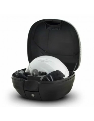 - Com apenas uma mão, a mala pode ser aberta, fechada e retirada da moto, bem como transportada com a ranhura integrada, tudo sem necessidade de utilização de chave.